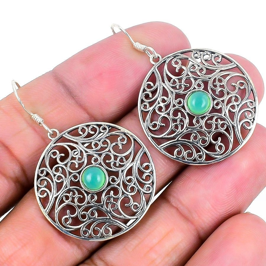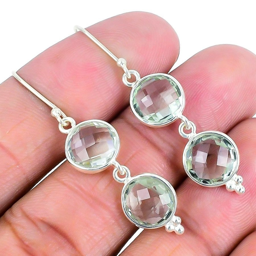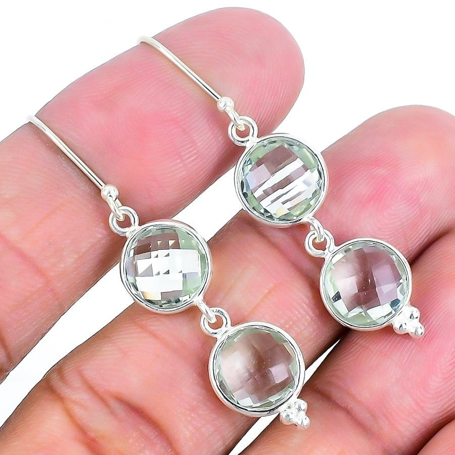 Green Amethyst Gemstone Solid Sterling Silver Dangle Drop Boho Earrings Jewelry
