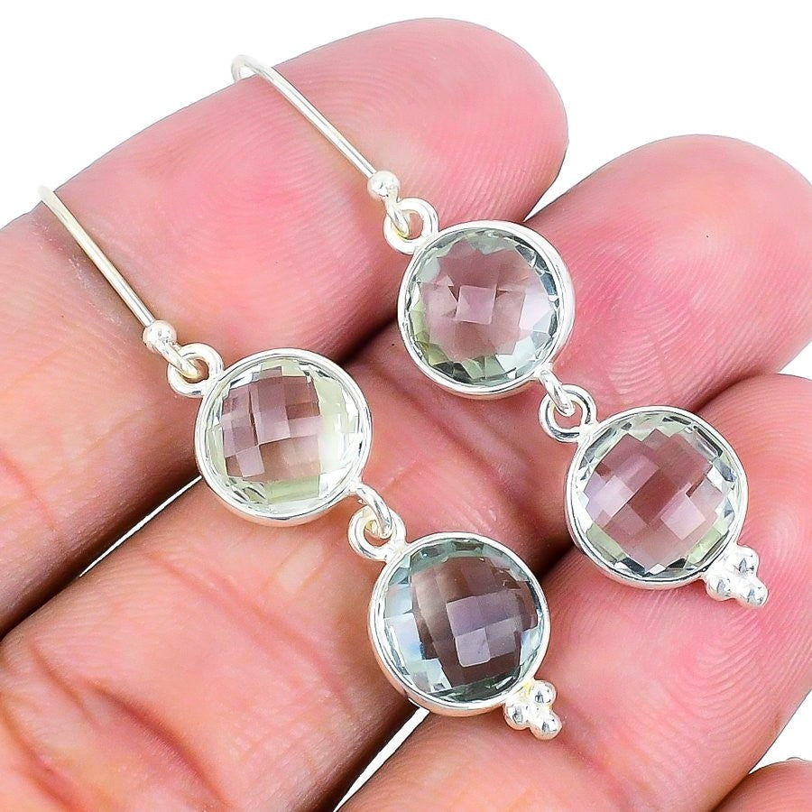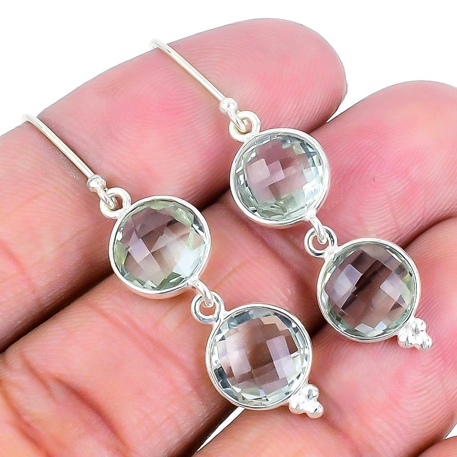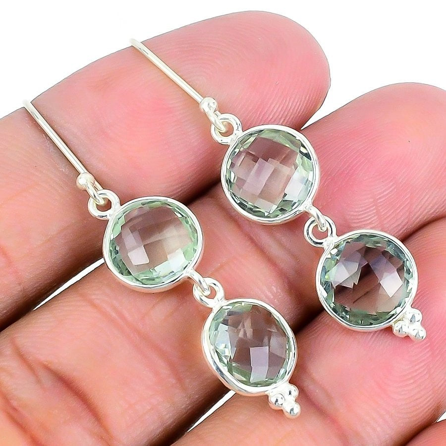 Natural Green Amethyst Sterling Silver Hook Dangle Birthday Anniversary Earrings