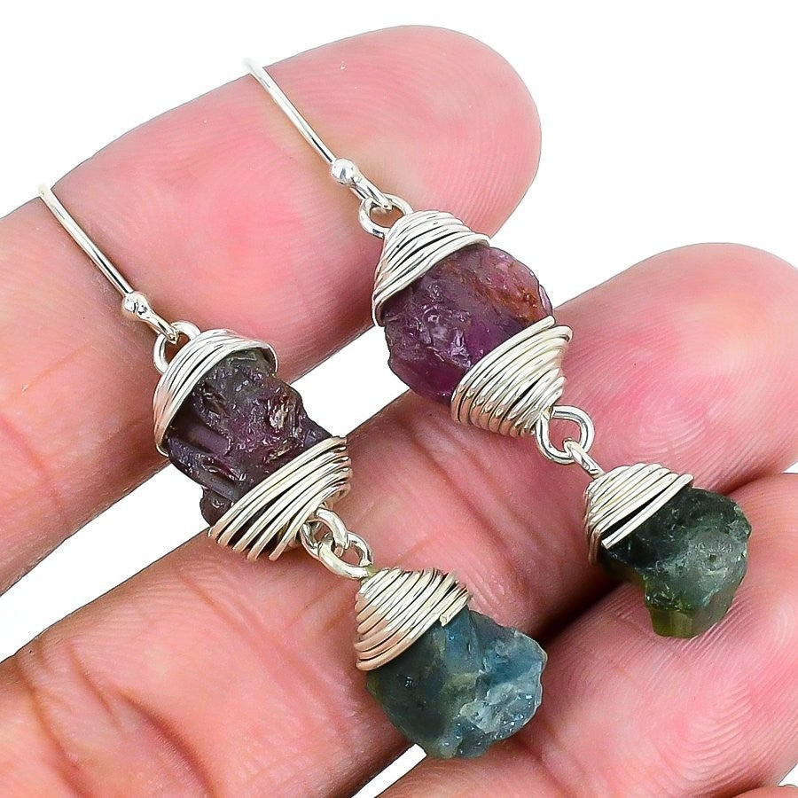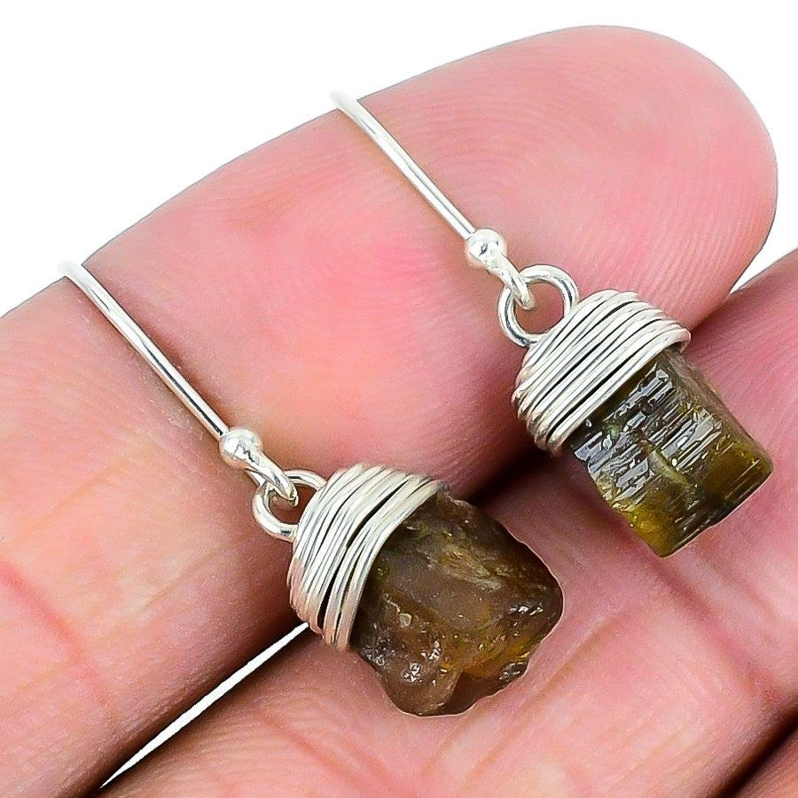 Tourmaline rough Stone 925 Sterling Silver October Dangling New Earrings Jewelry