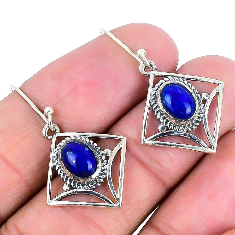 Lapis Lazuli Gemstone Solid Sterling Silver Drop Engagement Sisters Day Earrings
