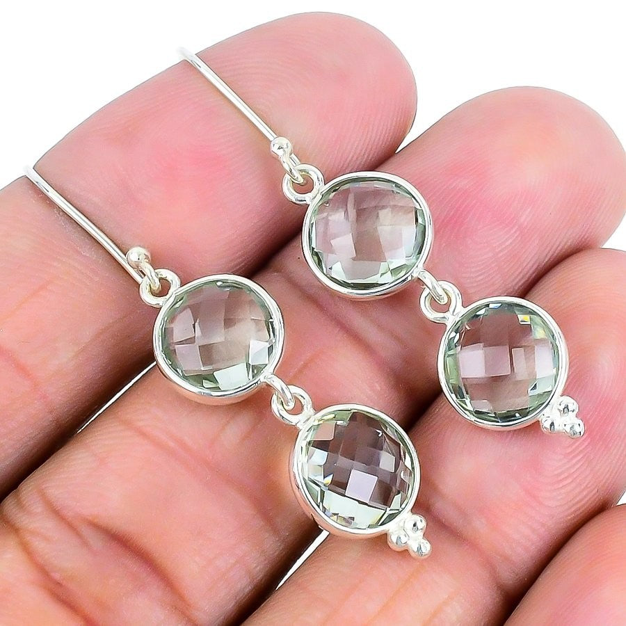 Green Amethyst Stone Sister Dangle Drop Unique Earrings Jewelry 925Ā SolidĀ Silver