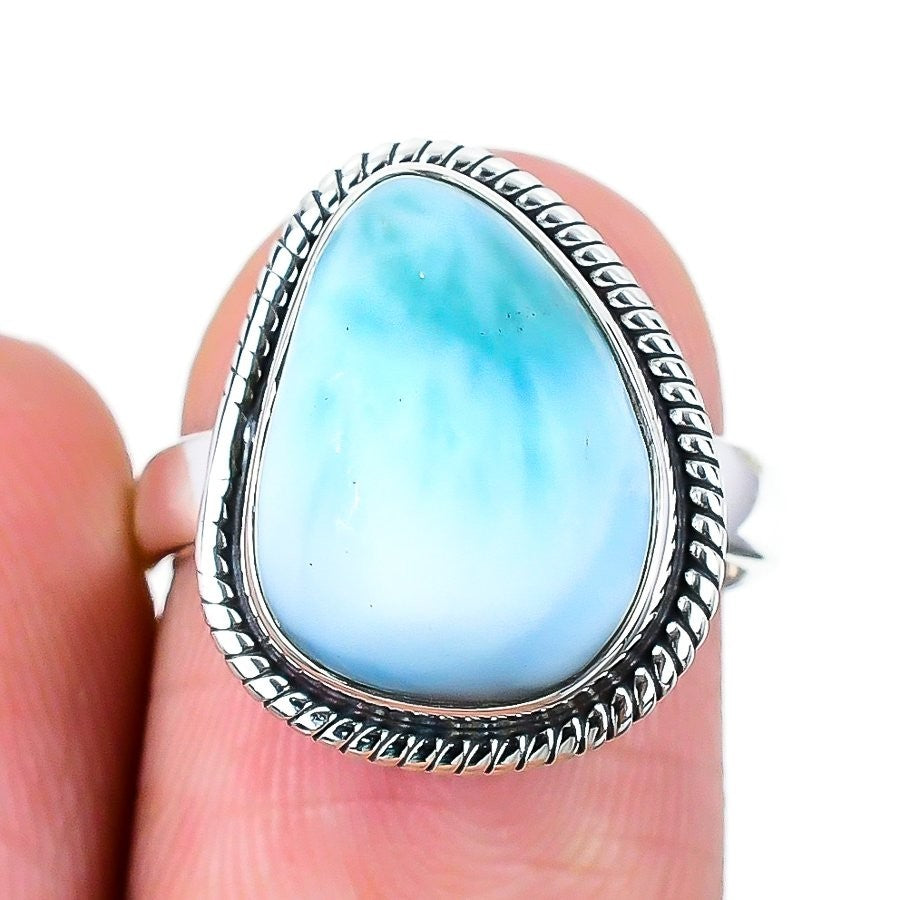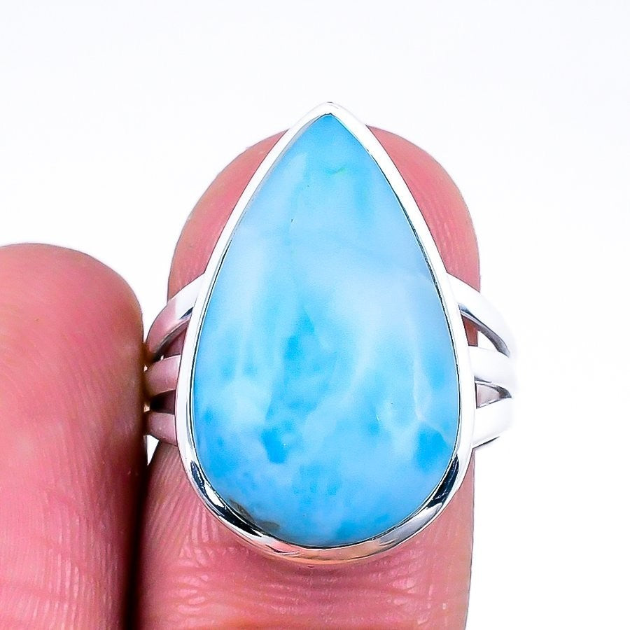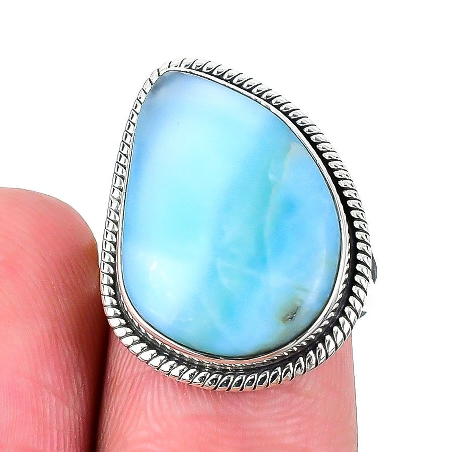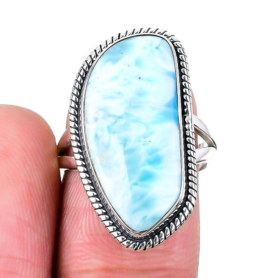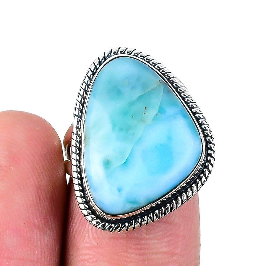 Natural Republic Larimar Statement Handcrafted Ring 925 Sterling Silver US 10