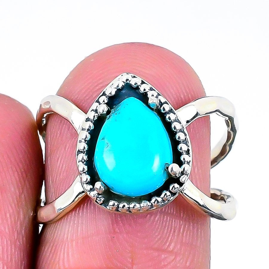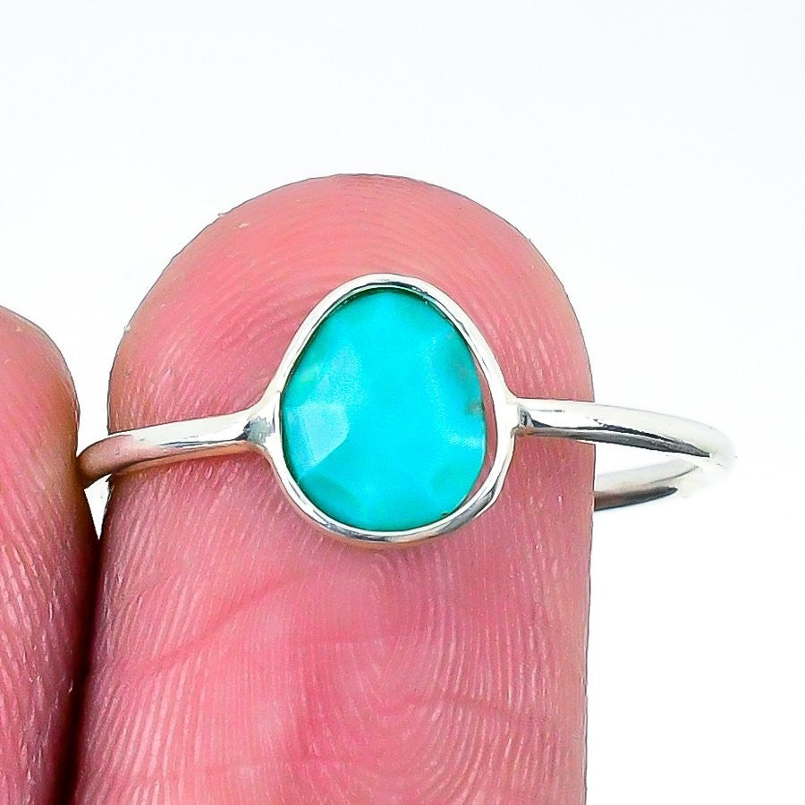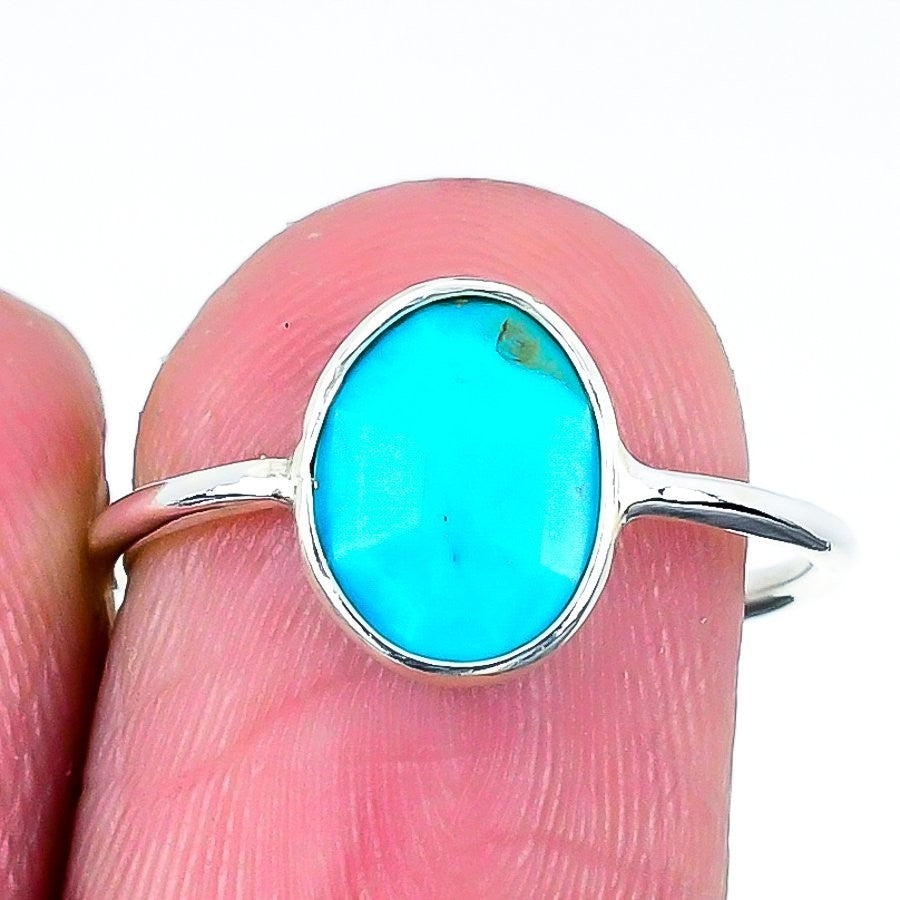 Arizona Turquoise Gemstone 925Ā SolidĀ Silver Band Engagement Sister Ring Size 7.5