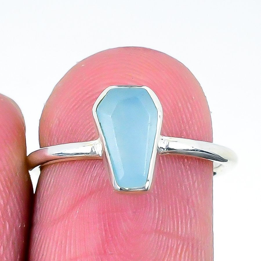 Republic Larimar Stone Solid Silver Statement Anniversary Wedding Ring US 7.5
