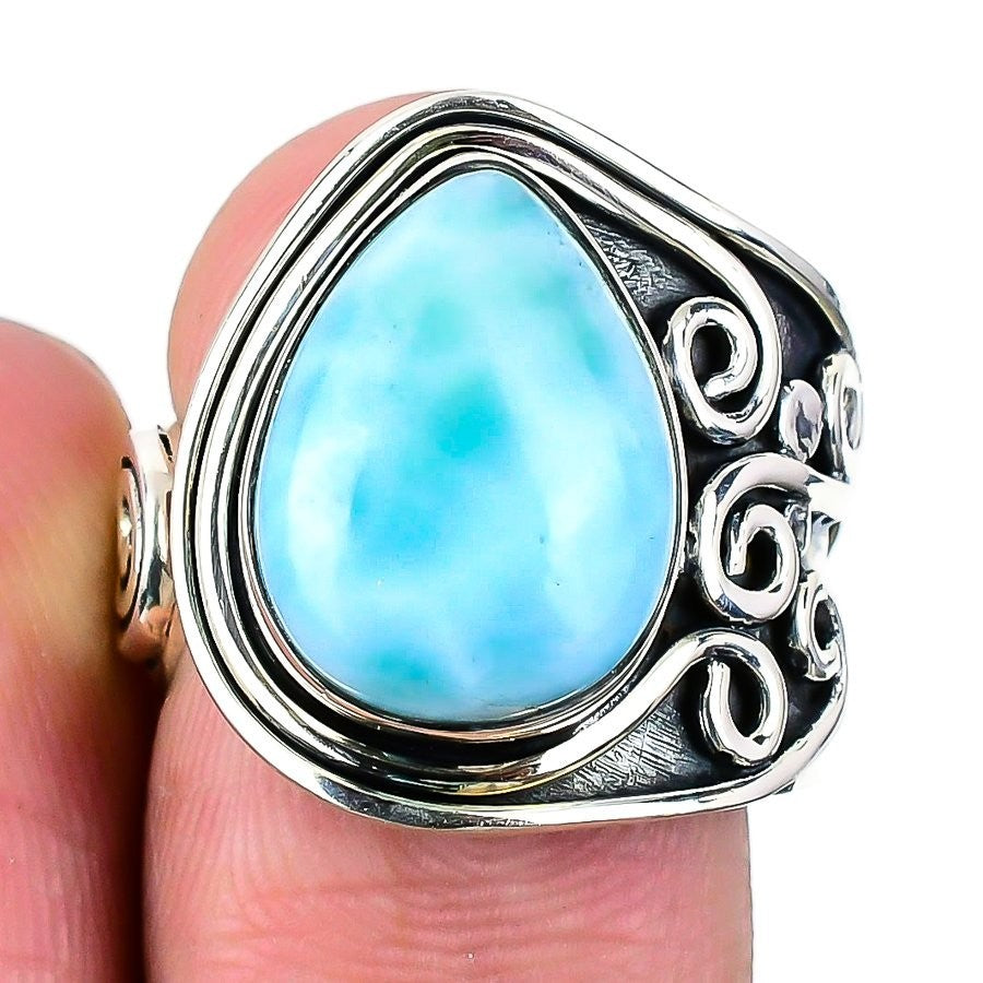 Natural Republic Larimar 925 Sterling Silver Band Handcrafted Ring Jewelry US 8