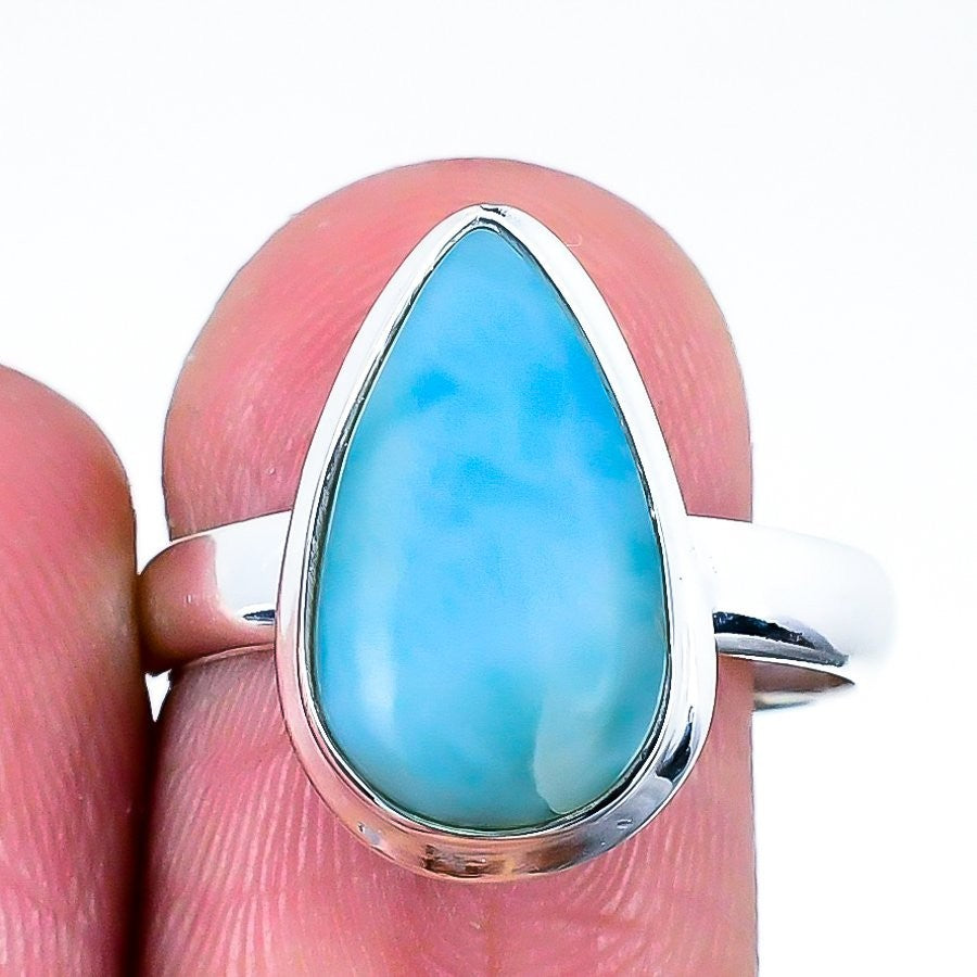 Republic Larimar Gemstone Solid Silver Friendship Day Band Ring Jewelry Size 7