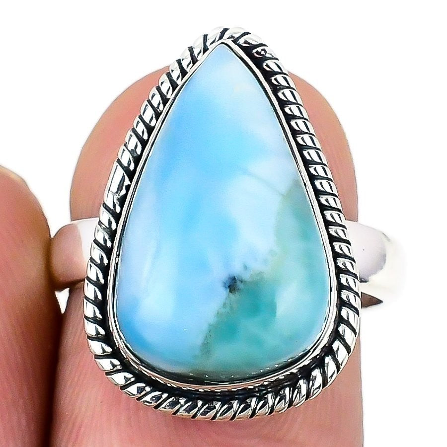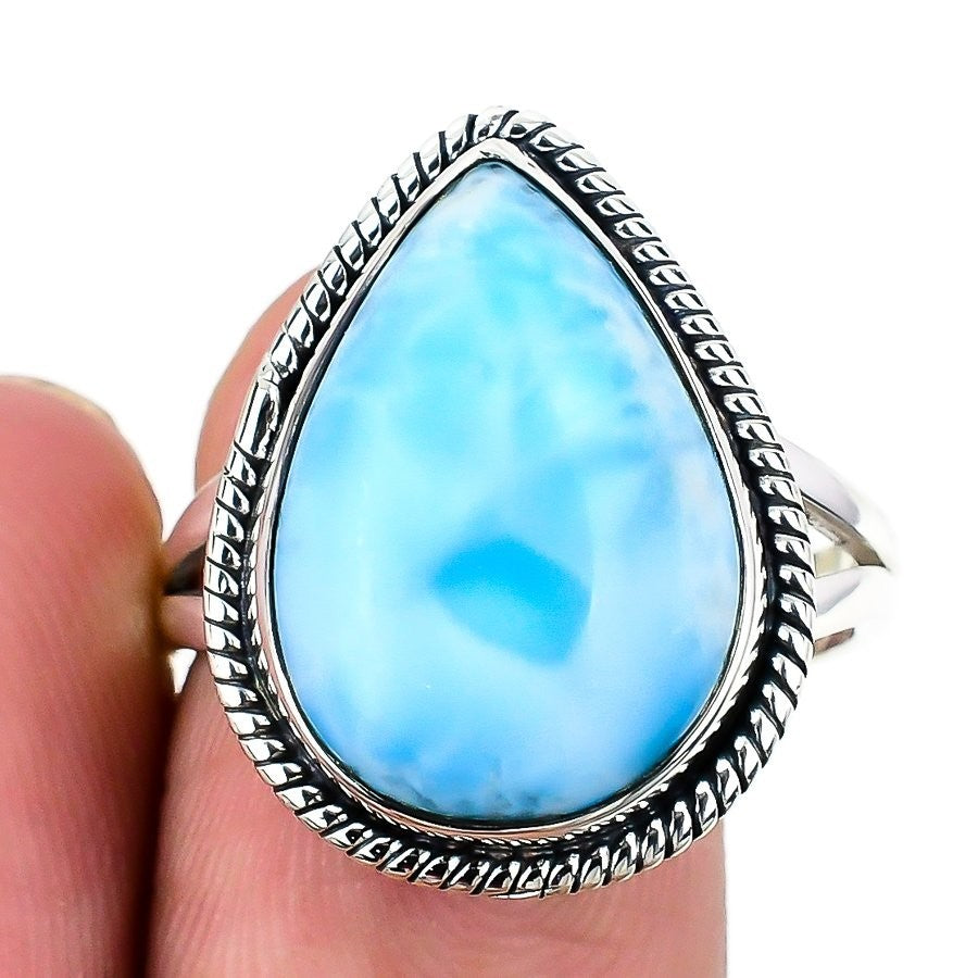Republic Larimar Stone Wedding Statement Ring Jewelry 925 Sterling Silver US 8