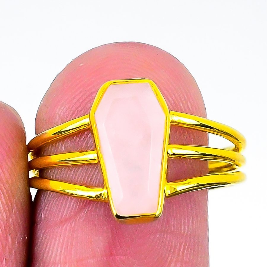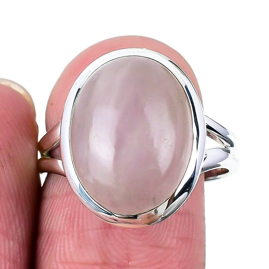 Rose Quartz Stone Solid Silver Ethnic Promise Band Sister Ring Jewelry Size 8.5