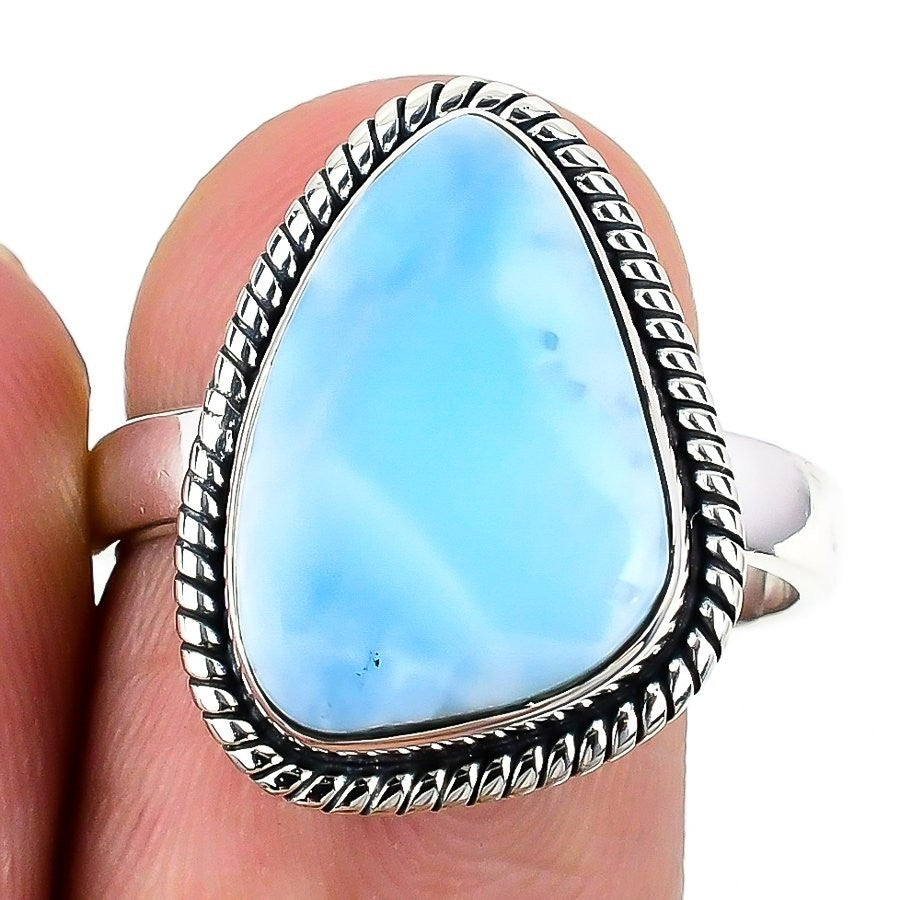 Republic Larimar Stone 925 Sterling Silver Engagement Unique Statement Ring US 7