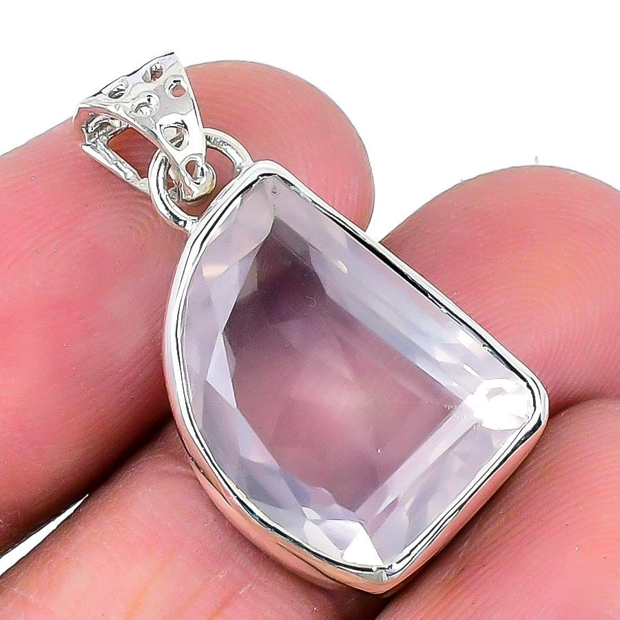 Heart Chakra Natural Rose Quartz Sisters Day Wife Engagement Pendant 925 Silver