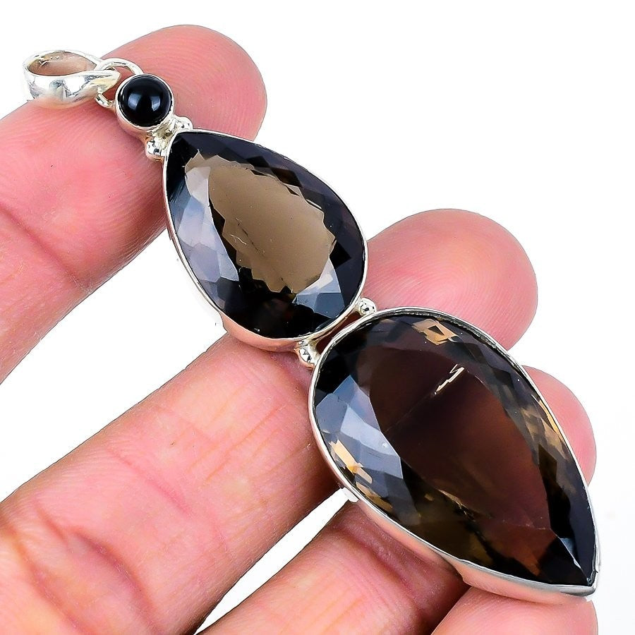 Smoky Topaz Stone Solid Silver Boho Engagement Wedding Art Deco Daughter Pendant