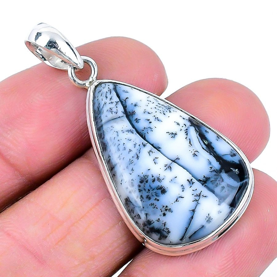 Natural Dendrite Opal 925Ā SolidĀ Silver Birthday Art Deco Handmade Wife Pendant