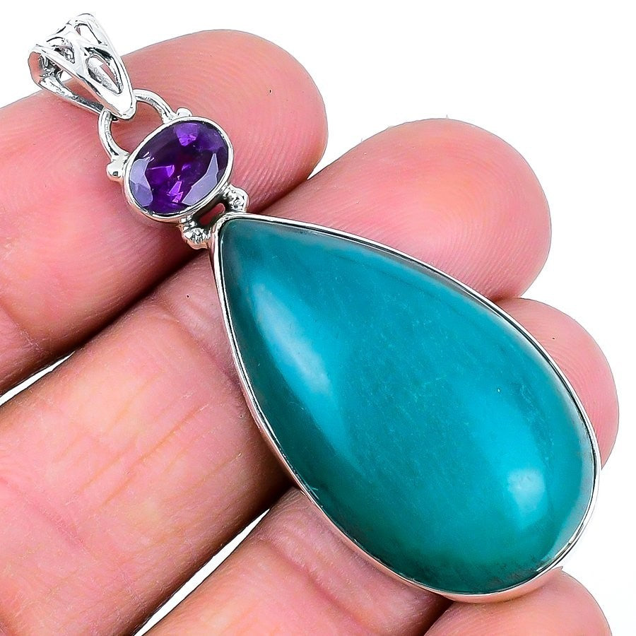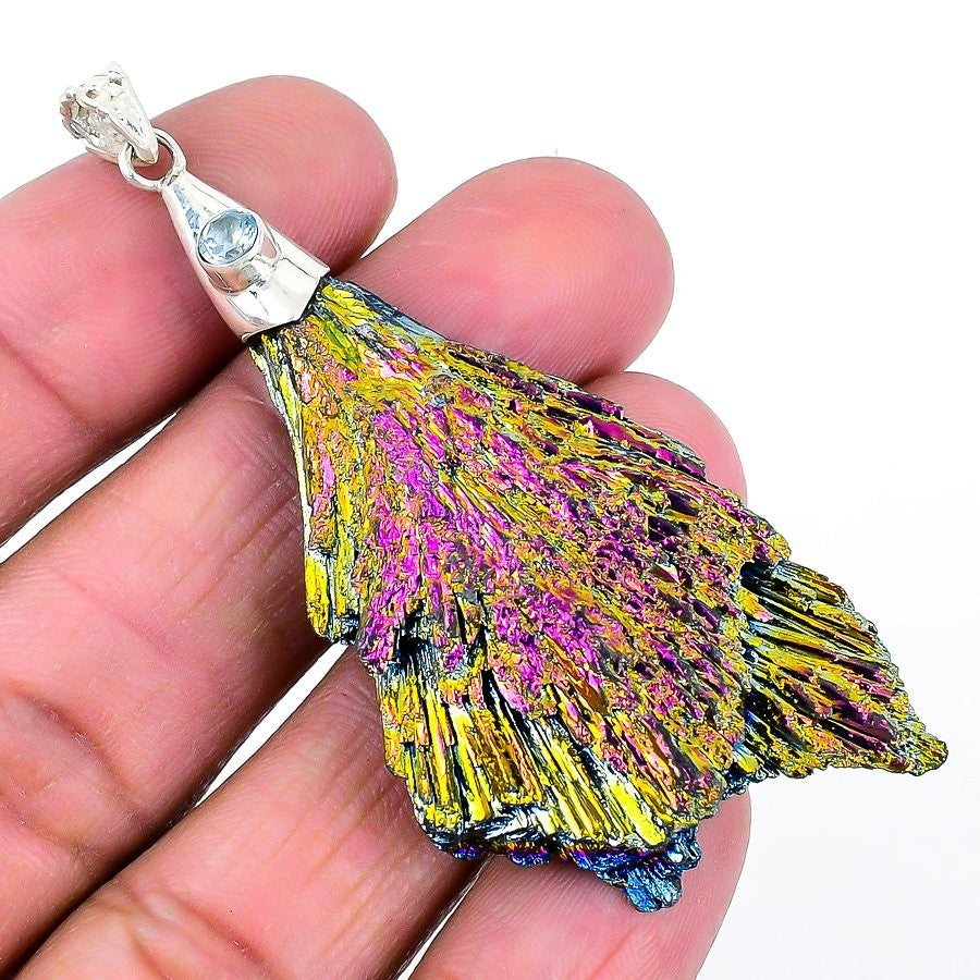 Natural Peacock Titanium Aura 925Ā SolidĀ Silver Wife New Unique Pendant Jewelry