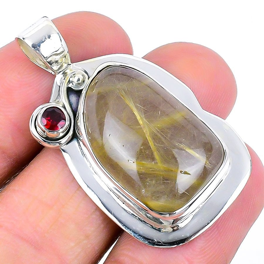Golden Rutile Gemstone 925Ā SolidĀ Silver Birthday Daughter Ethnic Pendant Jewelry