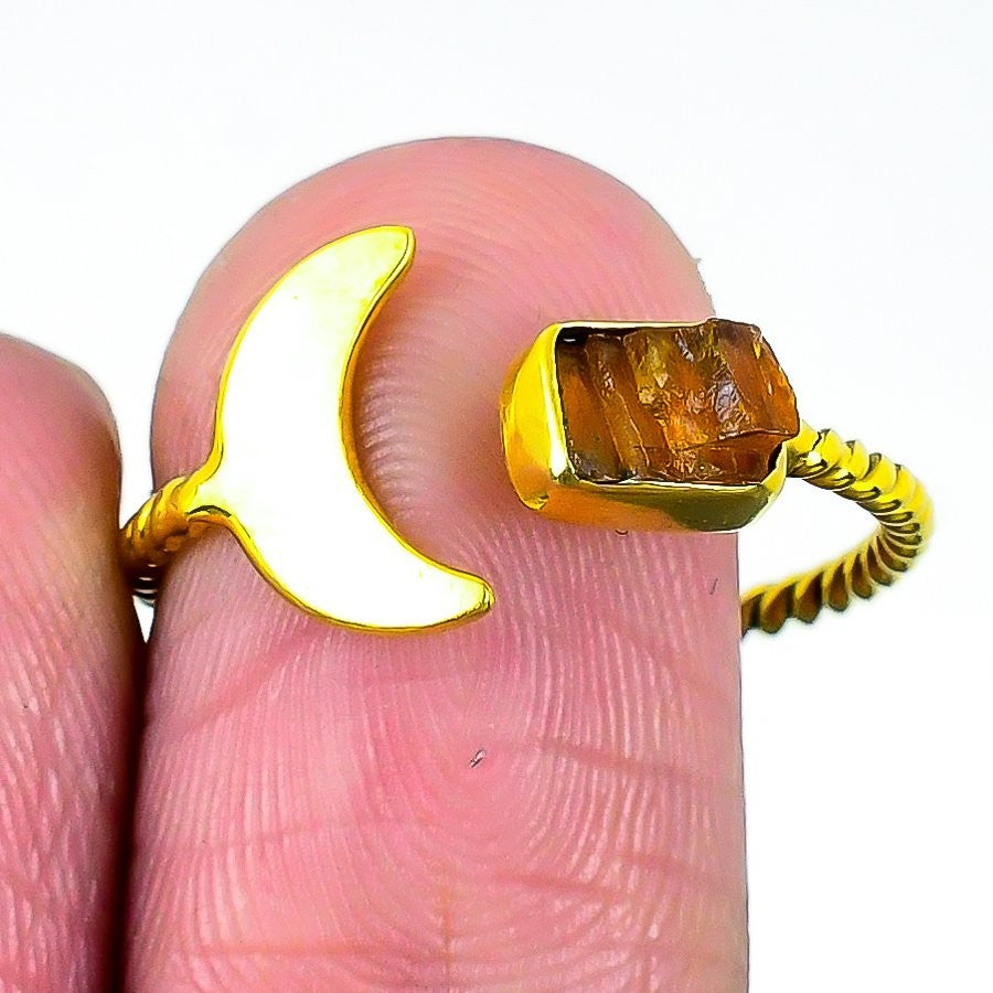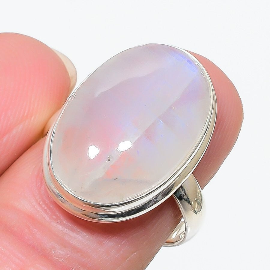 Natural Rainbow Moonstone Solid Silver Wedding Boho Statement Trendy Ring US 8