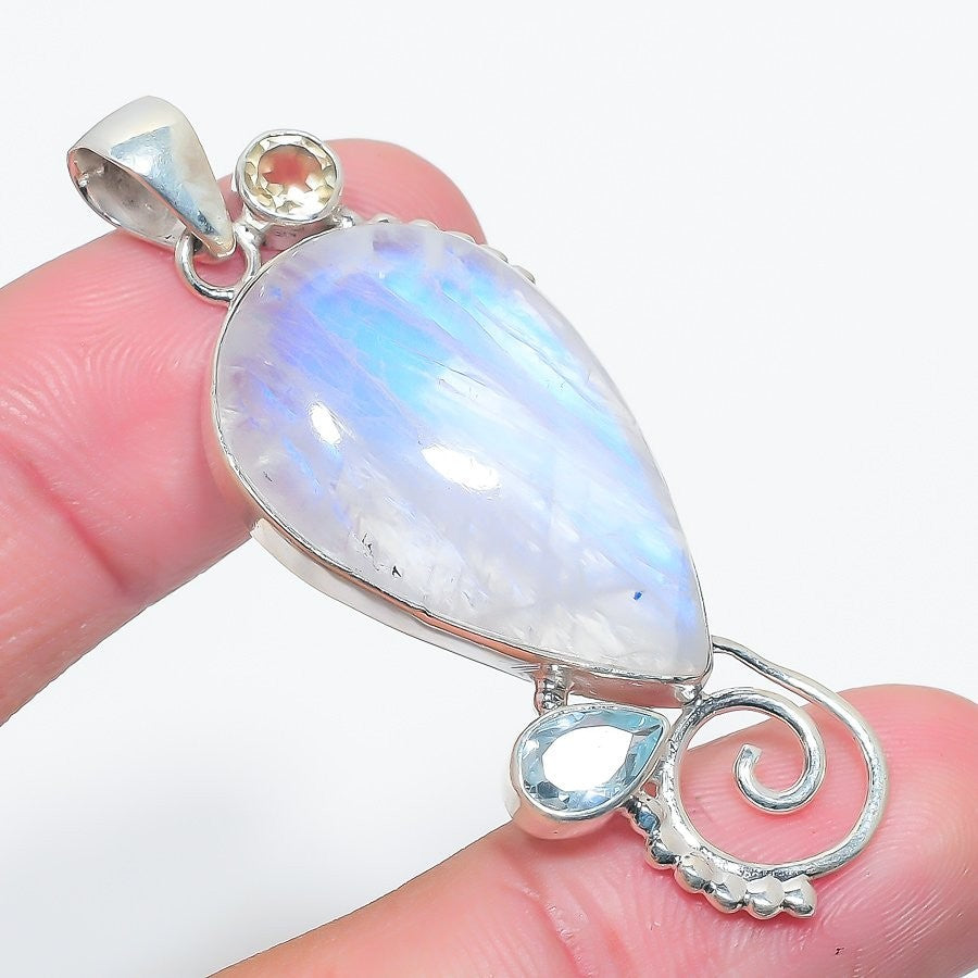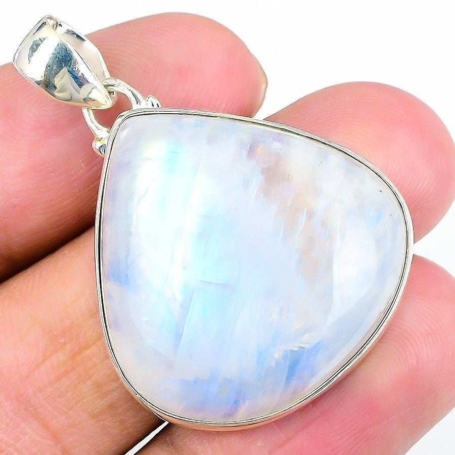 Rainbow Moonstone Gemstone Solid Silver Crown Chakra Anniversary Pendant Jewelry