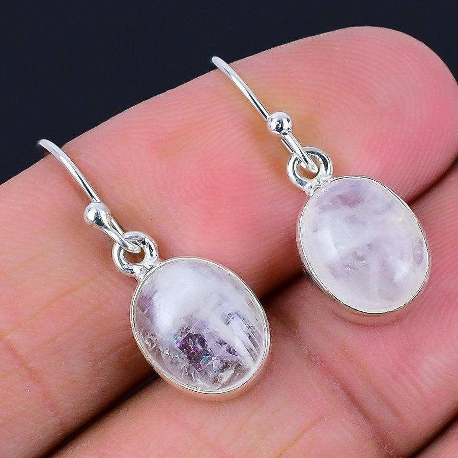 Natural Rainbow Moonstone Solid Sterling Silver Birthday Dangling Hook Earrings