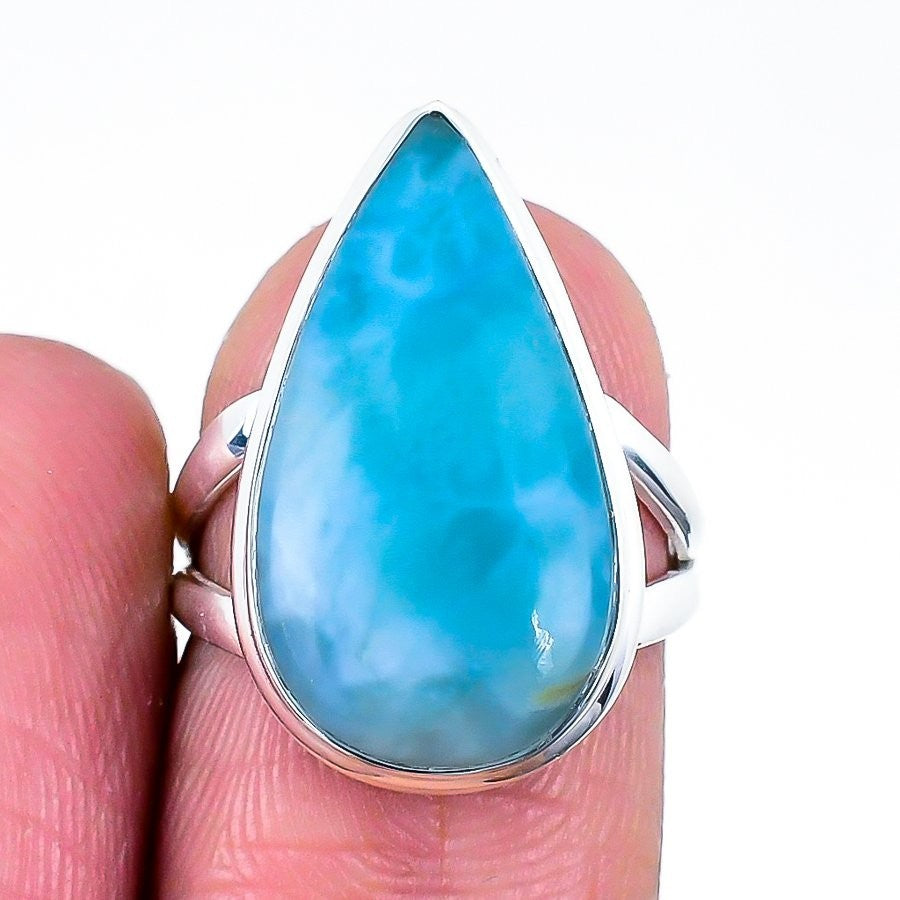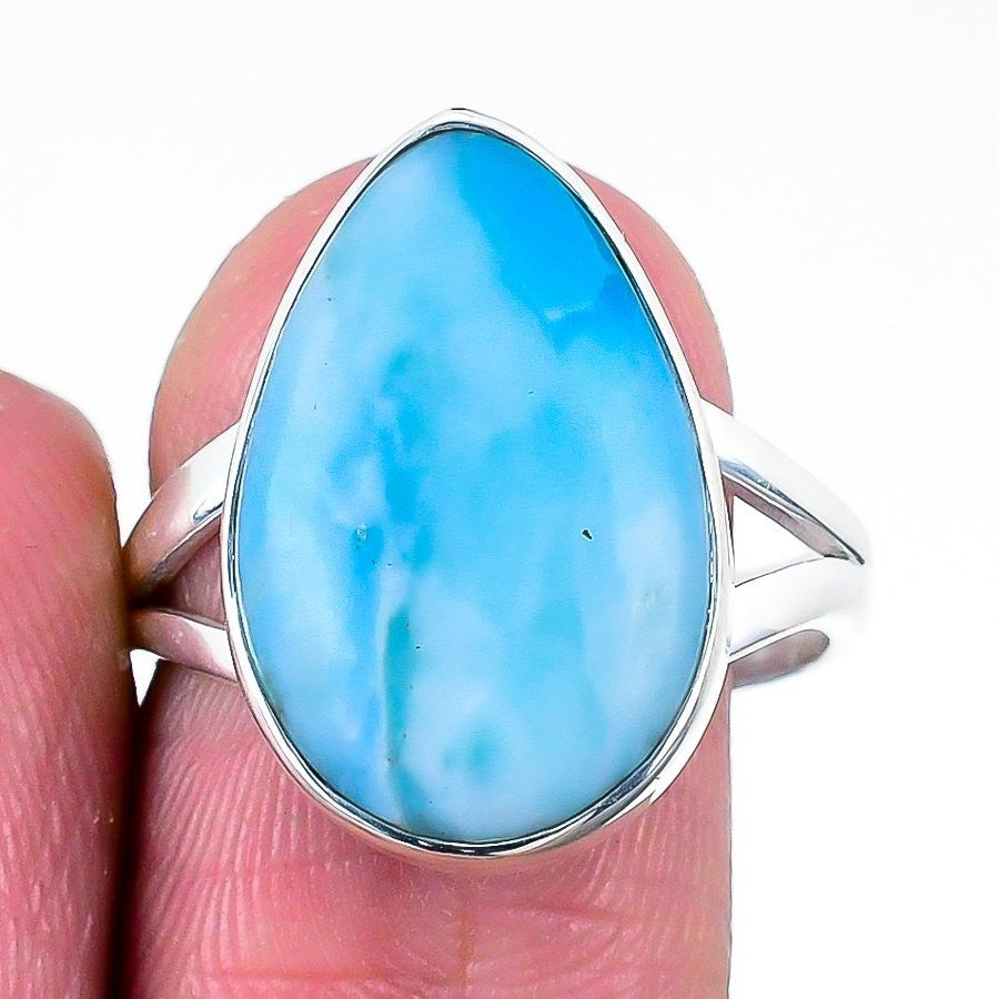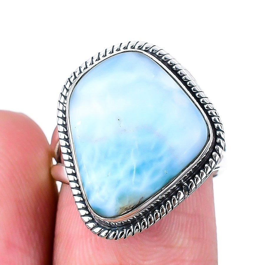 Republic Larimar Stone 925 Silver Handmade Statement Best Friend Gift Ring US 7