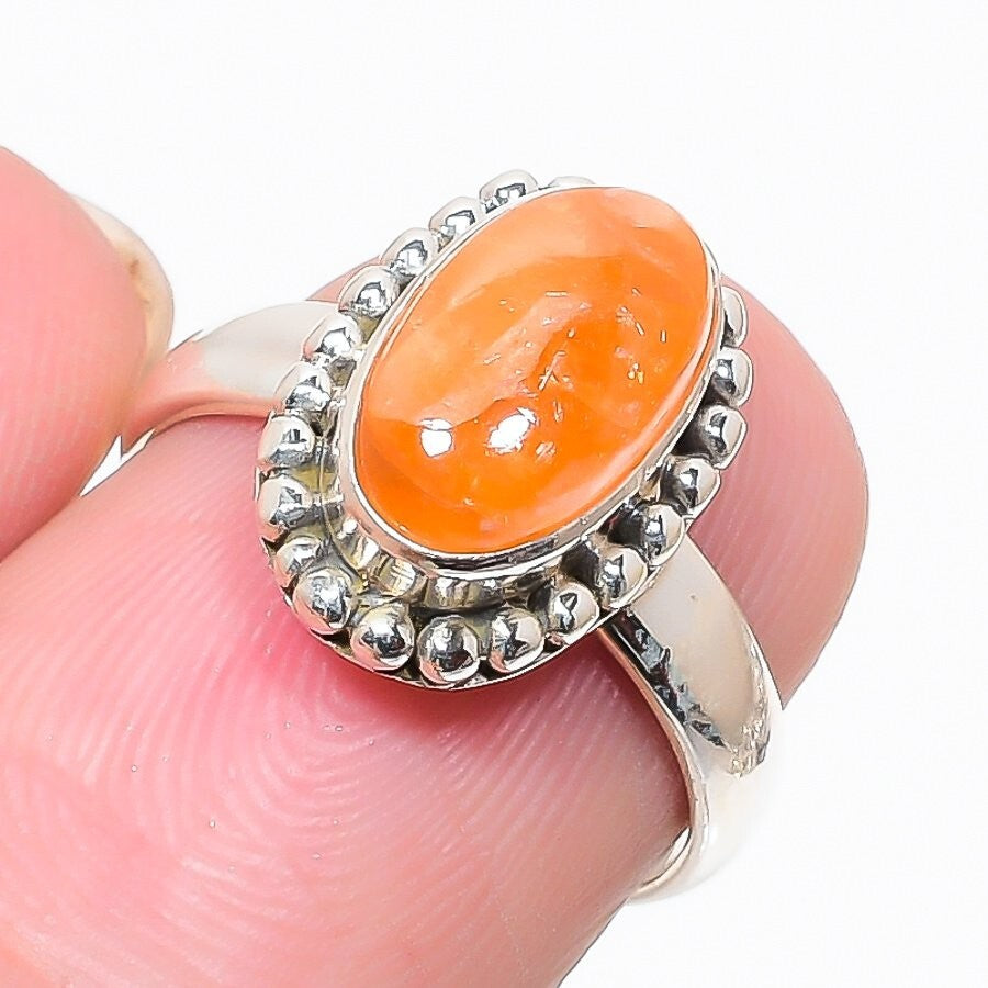 Orange Spiny Oyster Gemstone 925 Silver Engagement Statement Boho Ring Size 6.5