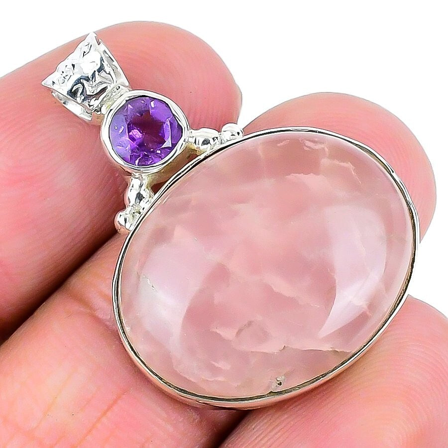 Rose Quartz Stone 925Ā SolidĀ Silver Wife Handmade Handcrafted Anniversary Pendant