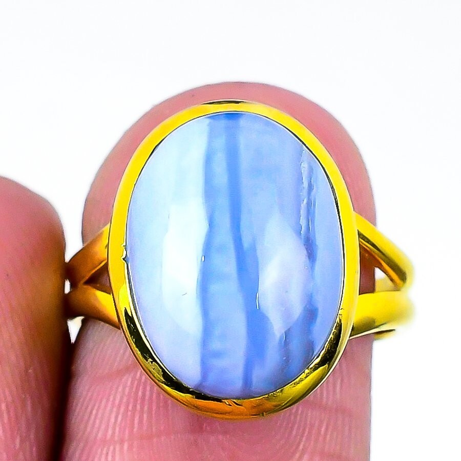 Blue Lace Agate Gemstone 925 Sterling Silver Ethnic Wife Band Ring Jewelry US 7
