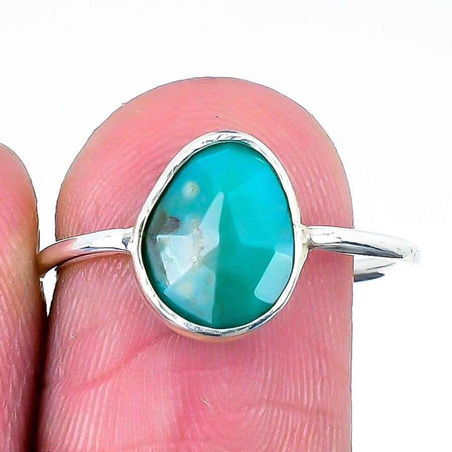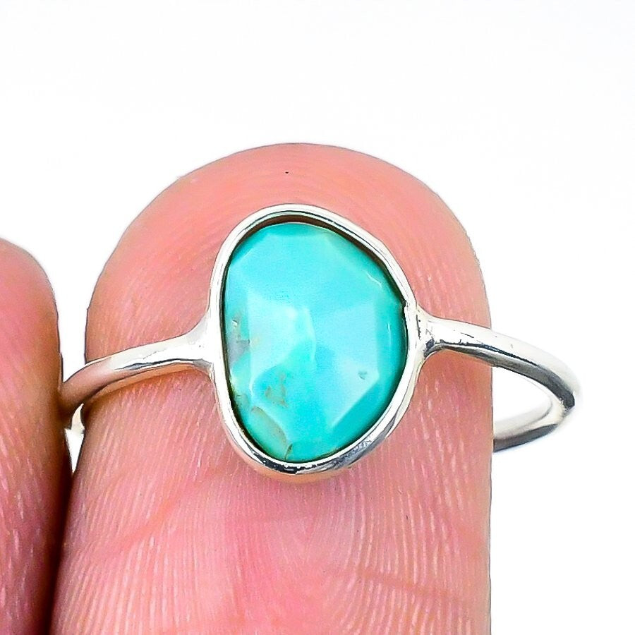 Tibetan Turquoise Stone 925Ā SolidĀ Silver Band Promise Throat Chakra Ring US 8