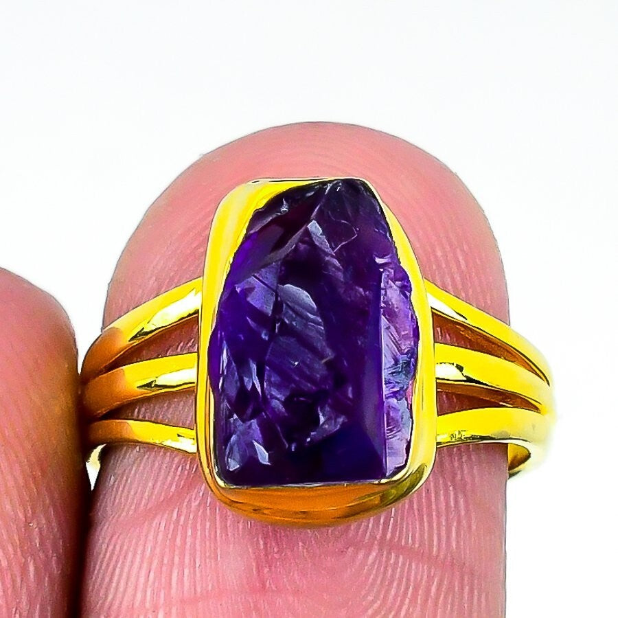 Womens day Sale Amethyst Gemstone Boho Statement Ring Solid Sterling Silver US 8