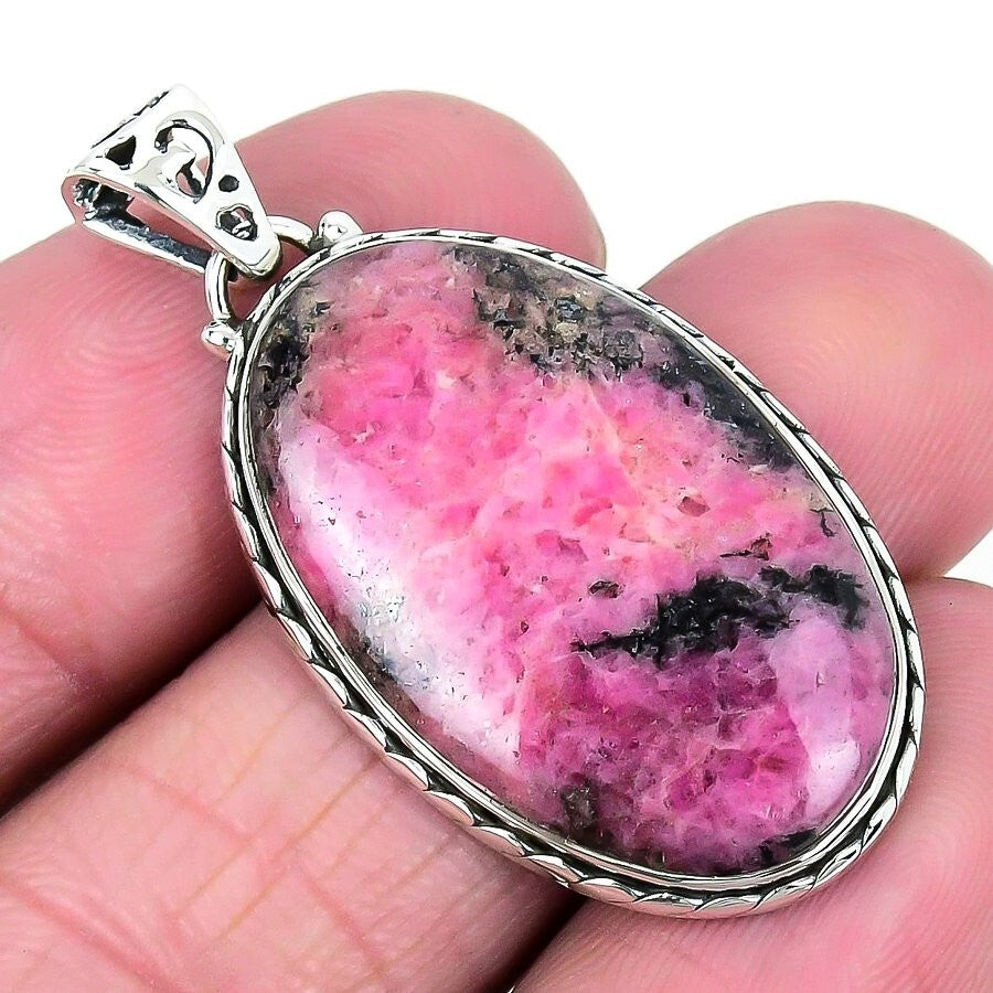 Heart Chakra Natural Rhodonite 925 Sterling Silver Unique Mother Pendant Jewelry