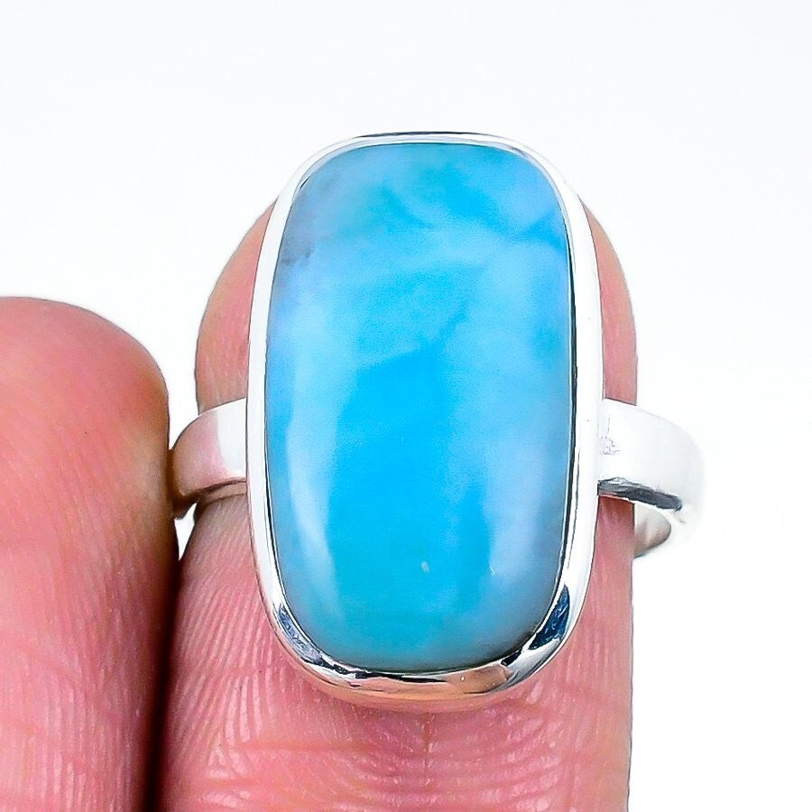 Republic Larimar Stone Solid Silver New Band Womens Gift Mother Trendy Ring US 7