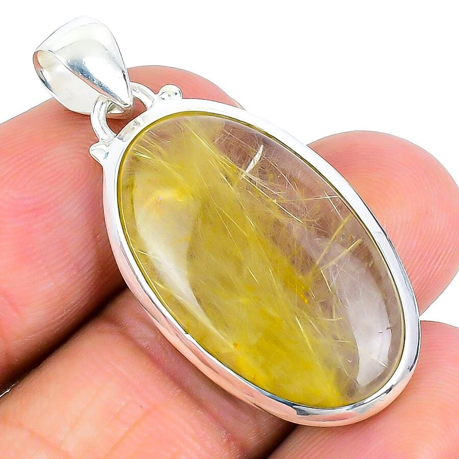 Womens day Deal Golden Rutile Gemstone Ethnic Unique Bezel Pendant Solid Silver
