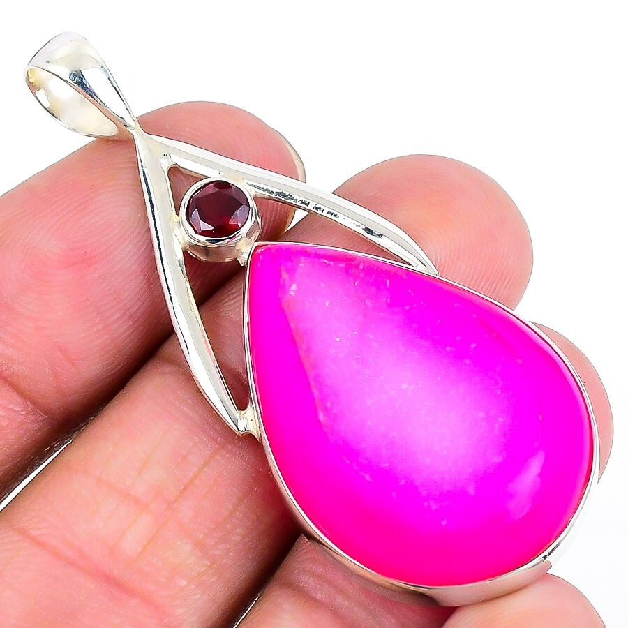 Natural Pink Druzy Wife Anniversary Handcrafted Handmade Pendant Solid Silver
