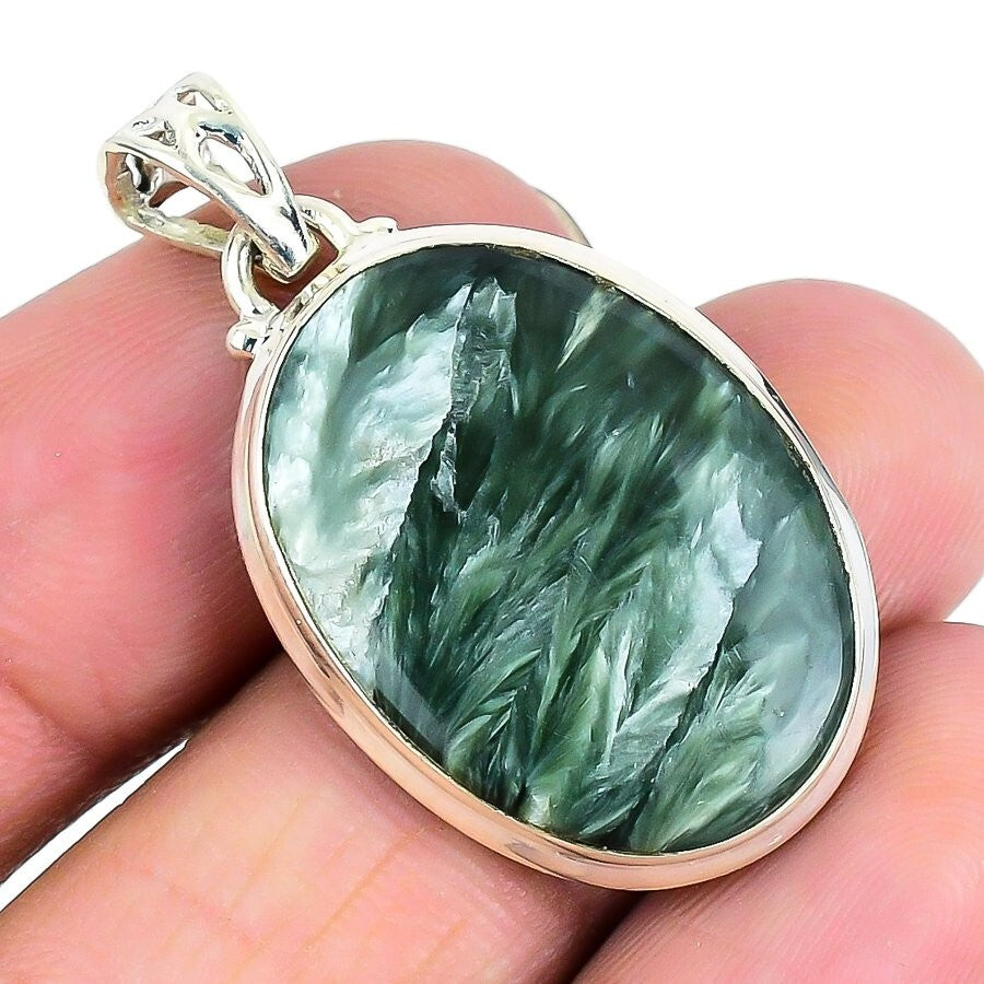 Seraphinite Gemstone Sterling Silver Birthday Womens Gift Ethnic Pendant Jewelry