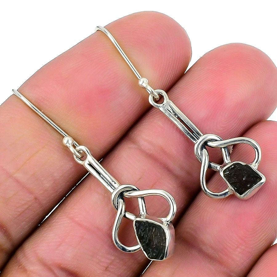 Moldavite Stone Sterling Silver Boho Dangle Drop Wedding Hook Earrings Jewelry