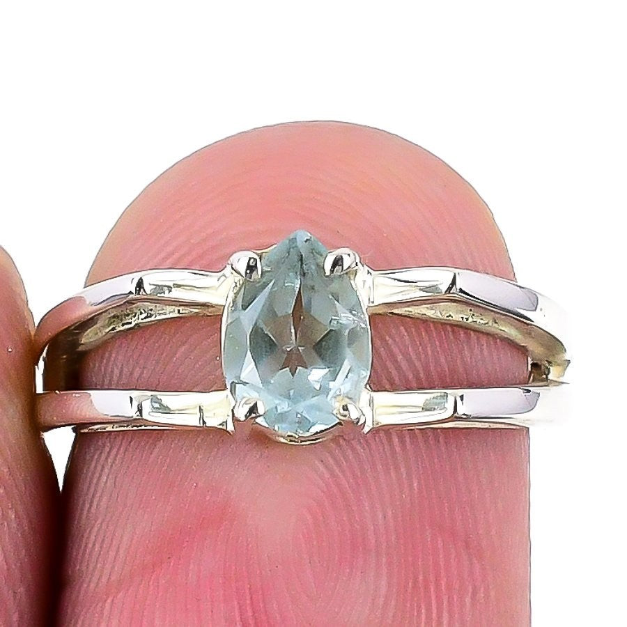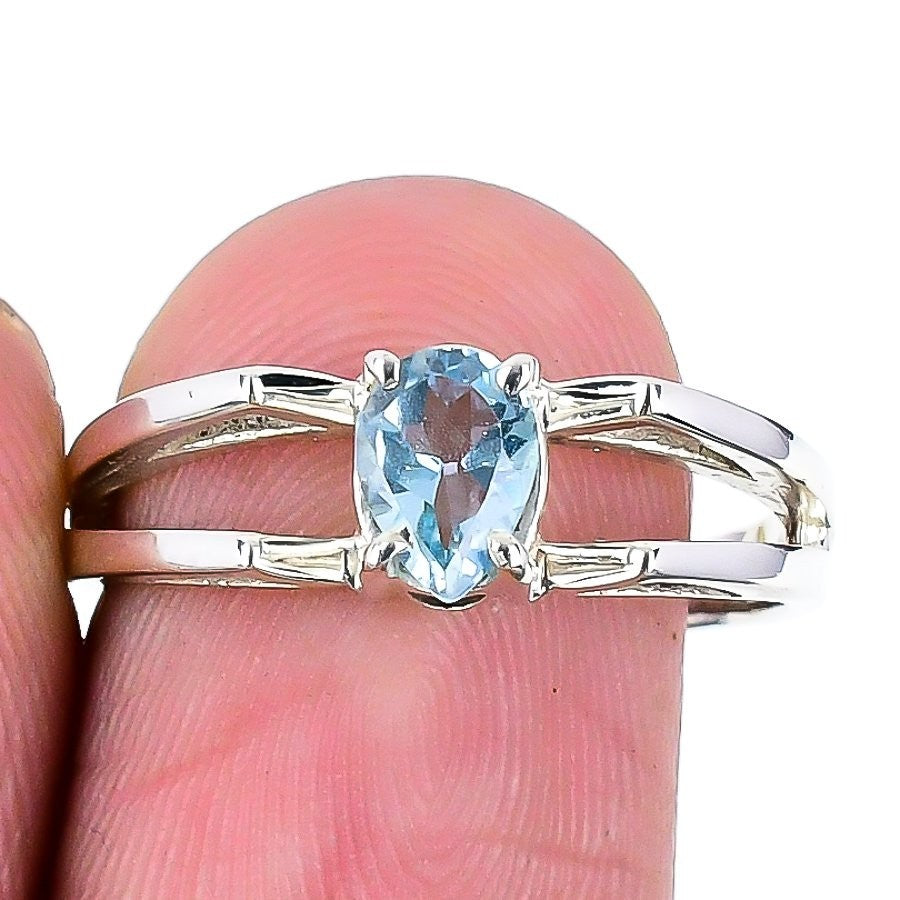 Throat Chakra Blue Topaz Stone Solid Silver Statement Friend Gift Ring Size 6