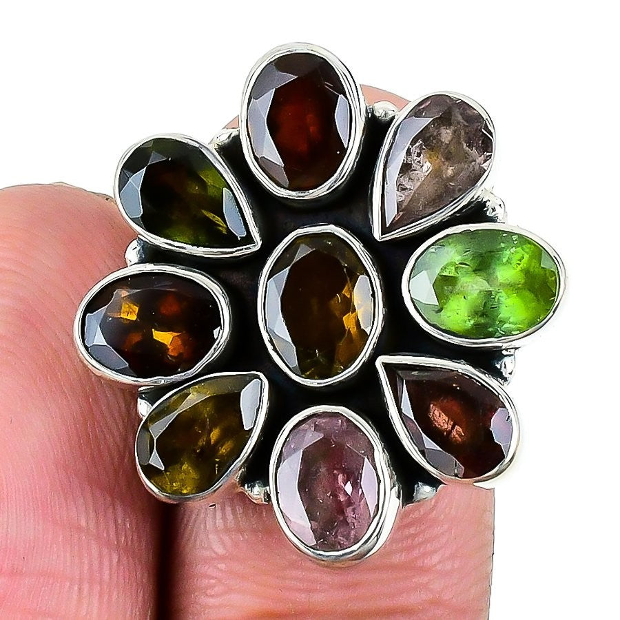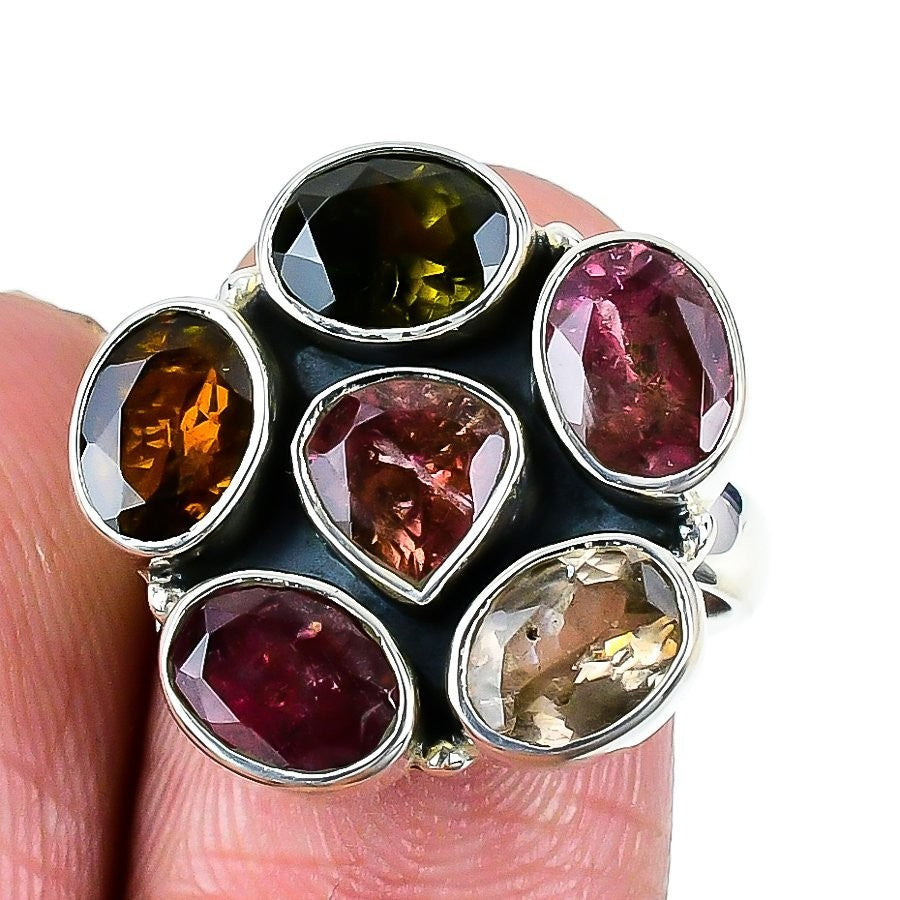 Natural Multi Tourmaline 925Ā SolidĀ Silver Statement Friend Gift Mother Ring US 8