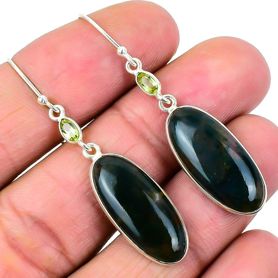 Moss Agate Stone 925 Silver Boho Unique Drop Dangle Sister Hook Earrings Jewelry