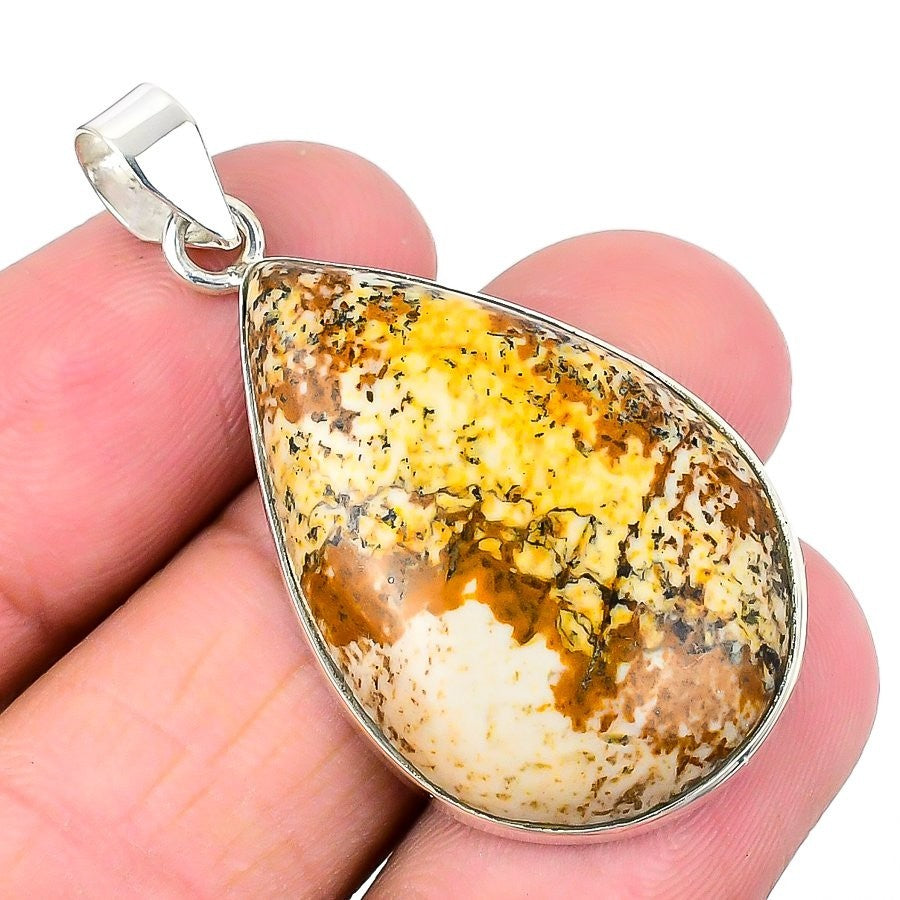 Picture Jasper Gemstone 925 Silver Wedding Art Deco Boho Wife Pendant Jewelry