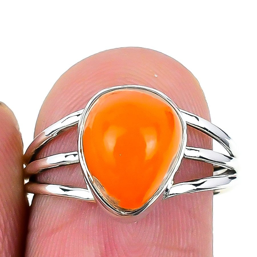 Natural Orange Oyster Turquoise Statement Ring Jewelry 925 Sterling Silver US 8