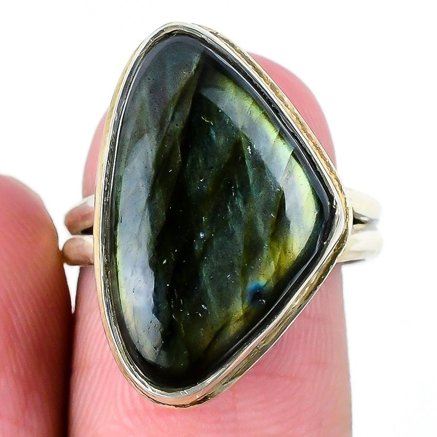 Labradorite Stone 925 Sterling Silver Cluster Handcrafted Ring Jewelry Size 8.5