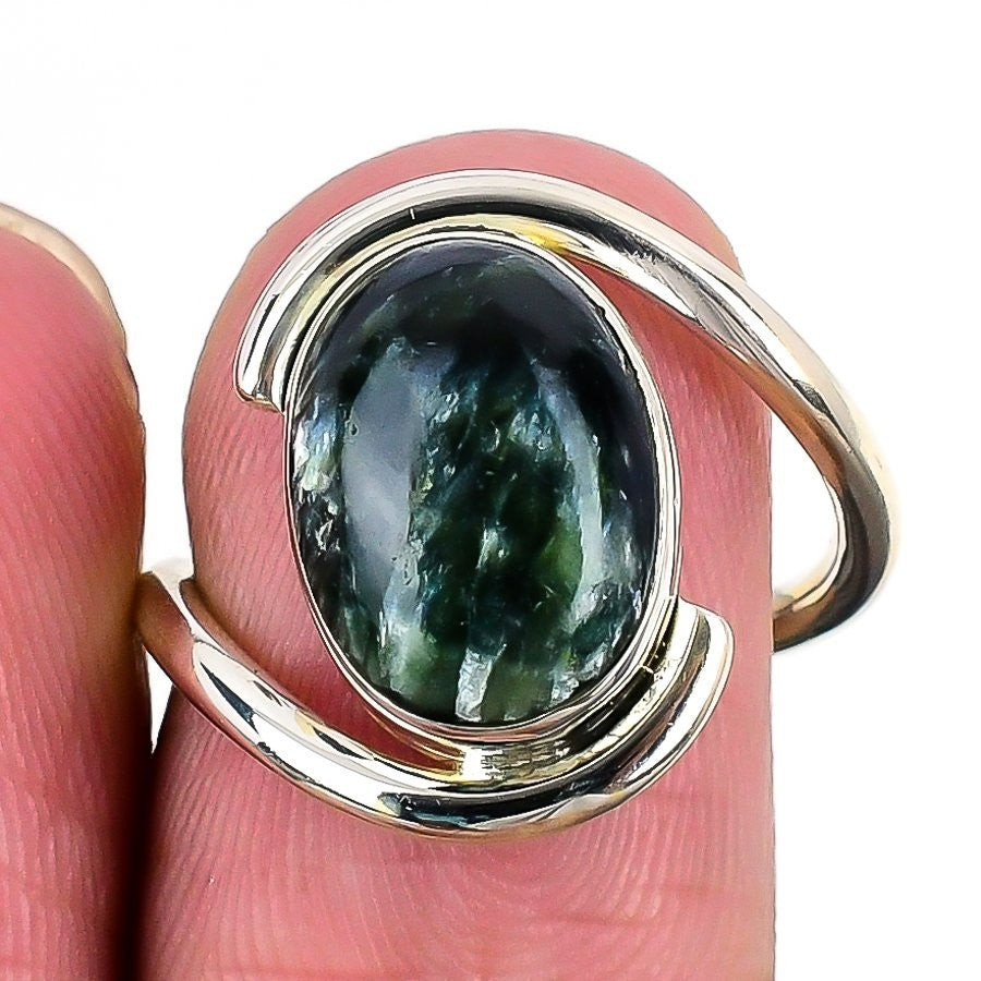Natural Seraphanite Engagement Statement Unique New Ring 925Ā SolidĀ Silver US 7.5