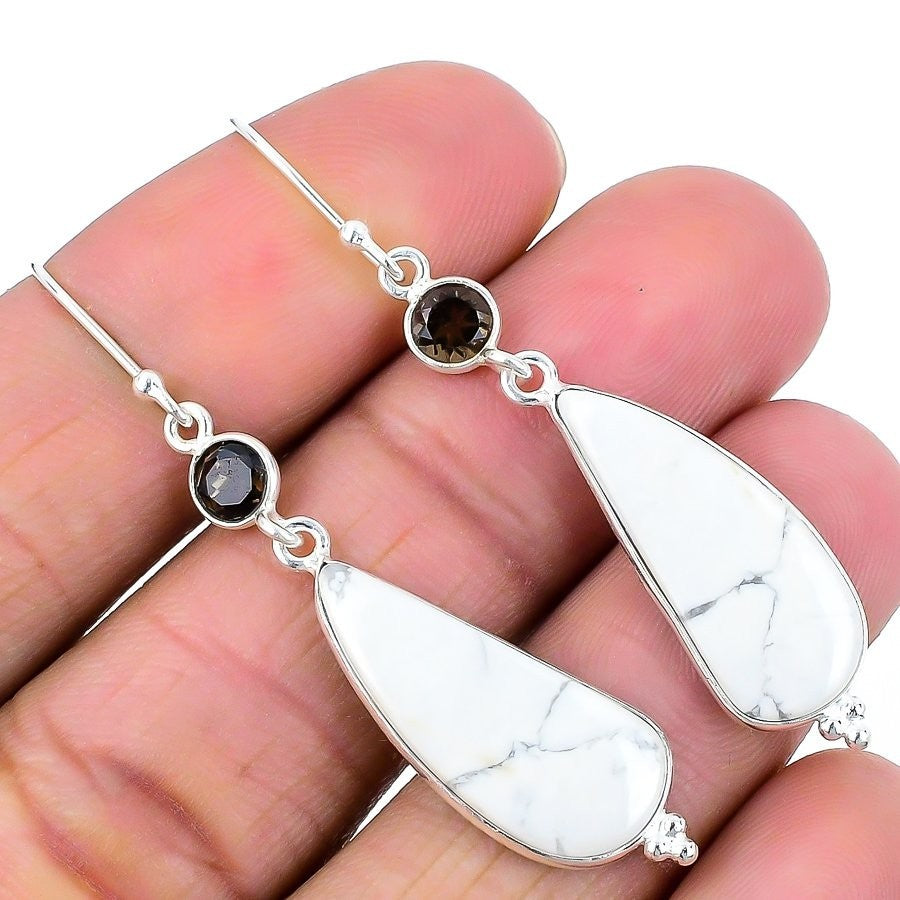 Natural Howlite Jasper 925 Silver Hook Dangle Drop Handcrafted Elegant Earrings