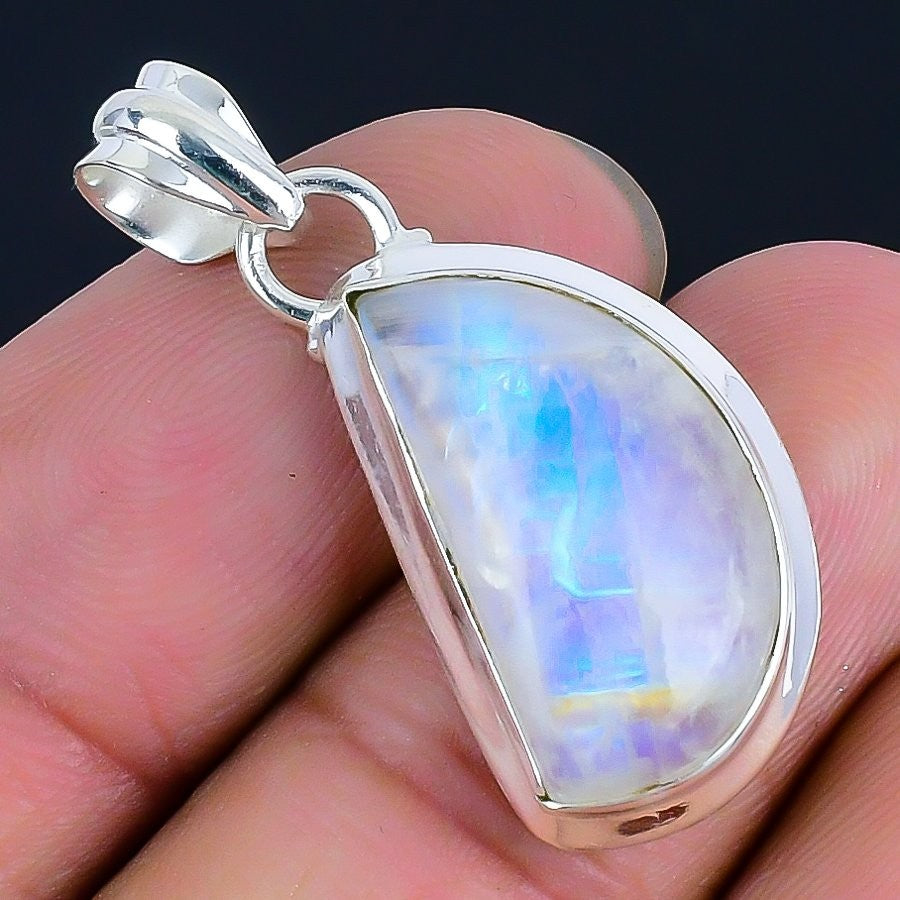 Natural Moonstone Solid Silver Handmade Handcrafted Bezel Anniversary Pendant