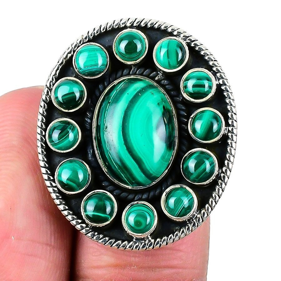 Natural Malachite Sterling Silver Friendship Day Statement Elegant Ring US 5.5