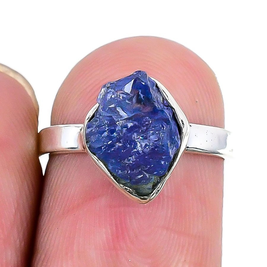 Natural Tanzanite Bezel Statement Birthday Wife Ring 925 Sterling Silver US 5.5