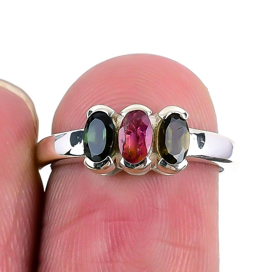 Natural Pink Tourmaline 925 Silver Statement Sisters Gift Ring Jewelry Size 6