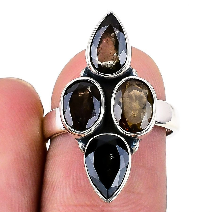 Natural Herkimer Daimond Solid Silver Cluster Artisan New Ring Jewelry Size 7.5