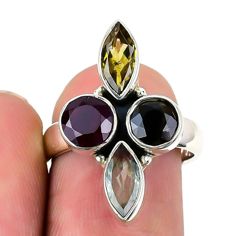 Green Tourmaline Gemstone 925 Solid Silver Statement New Ring Jewelry Size 6.5
