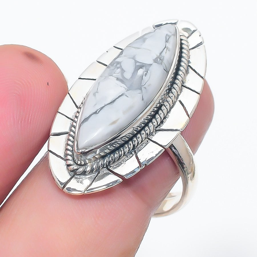 Howlite Jasper Gemstone 925 Silver Wedding Trendy Statement Sister Ring Jewelry