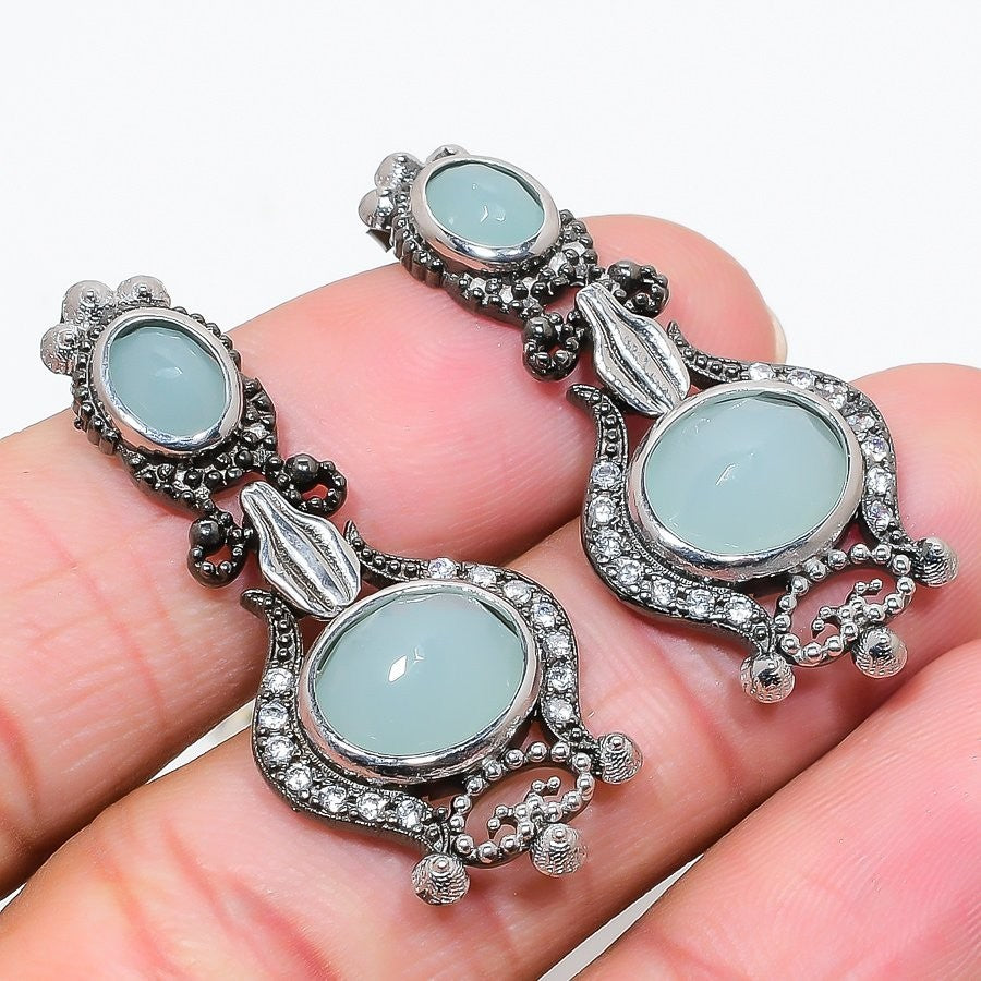 Natural Green Chalcedony Wedding Hook Dangle Mother Birthday Earrings 925 Silver