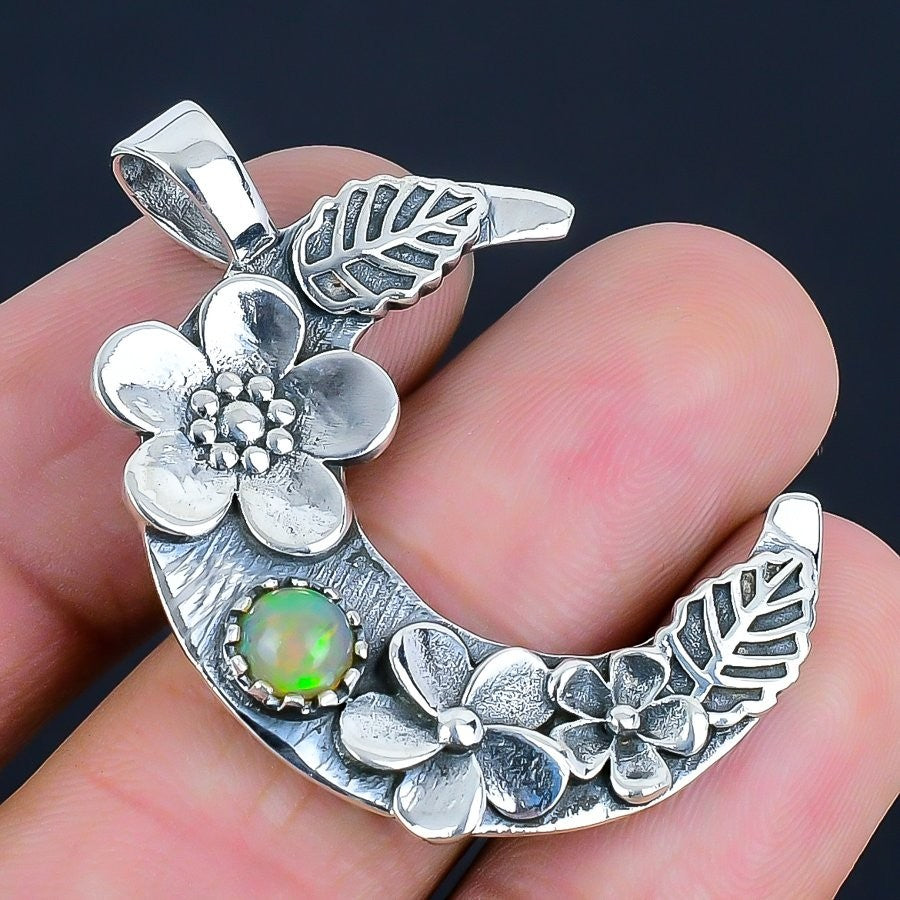 Ethiopian Opal Stone 925 Sterling Silver Friendship Day Bezel Pendant Jewelry